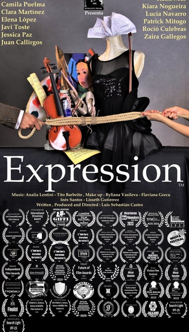 Expresión es la historia de tres generaciones que por el machismo y la violencia de género daña y obstaculiza el desarrollo artístico de dos mujeres con talento, la ultima descubre este secreto ya en su ultimo momento de vida y cambia su destino y el de sus hijas rescatando la verdad y dejando libre el camino del arte y de la igualdad para que se expresen con emancipación rompiendo esas cadenas de la sociedad por su prejuicios y falsos valores hacia la mujer que la ven como un objeto y no un ser humano igual.